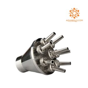 Vòi phun nước hình bông hoa 2 tầng làm từ inox 304 cao cấp, có thiết kế độc đáo và phù hợp cho mọi loại công trình. Sản phẩm này hiện được lắp đặt phổ biến tại các đài phun nước ở trung tâm thương mại, giữa hồ,… và được phân phối bởi Aquabolo